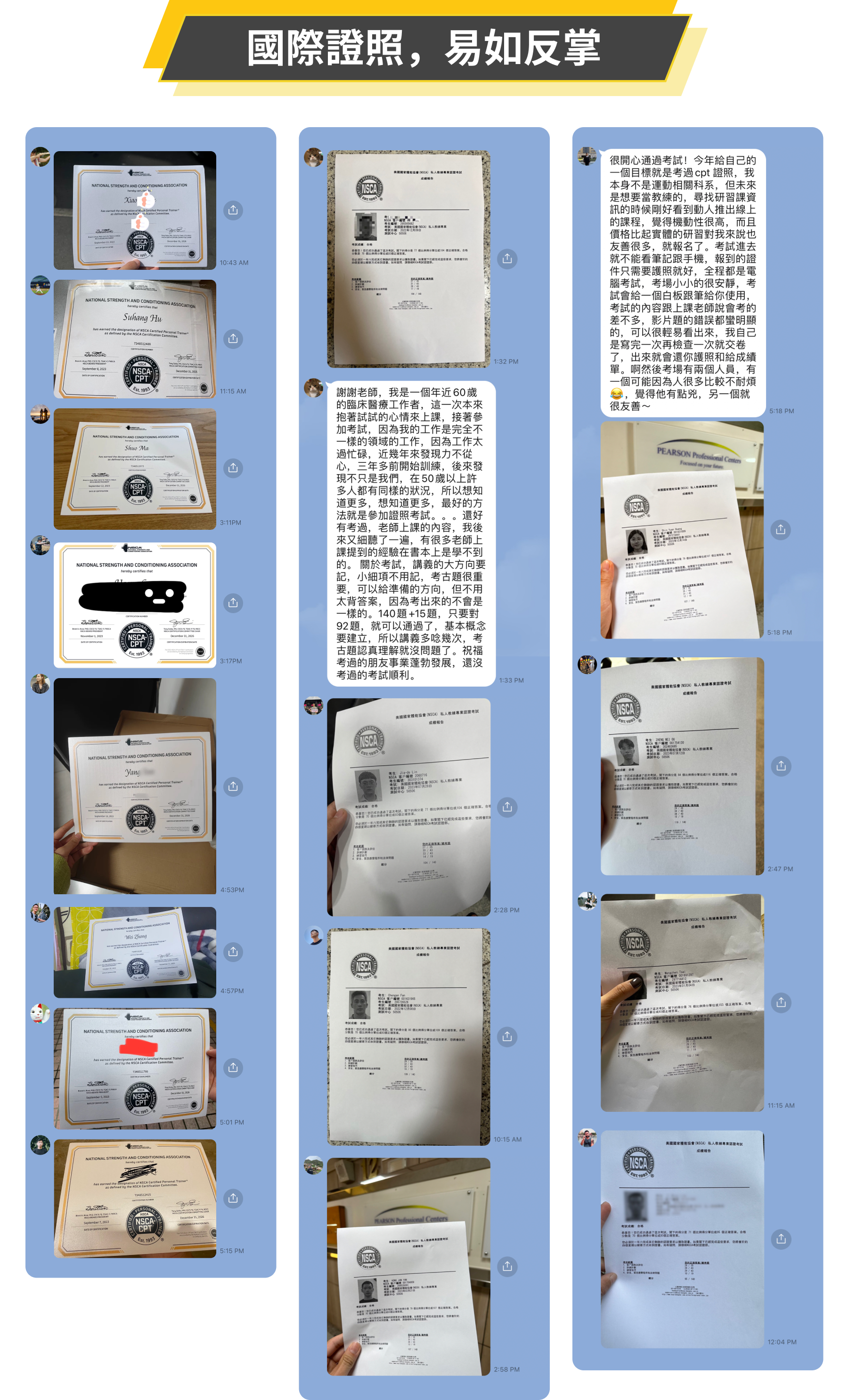 注意:需要確實繳交英文版高中(含)以上學歷證明,以及CPR+AED急救證,NSCA才會頒發證書。
